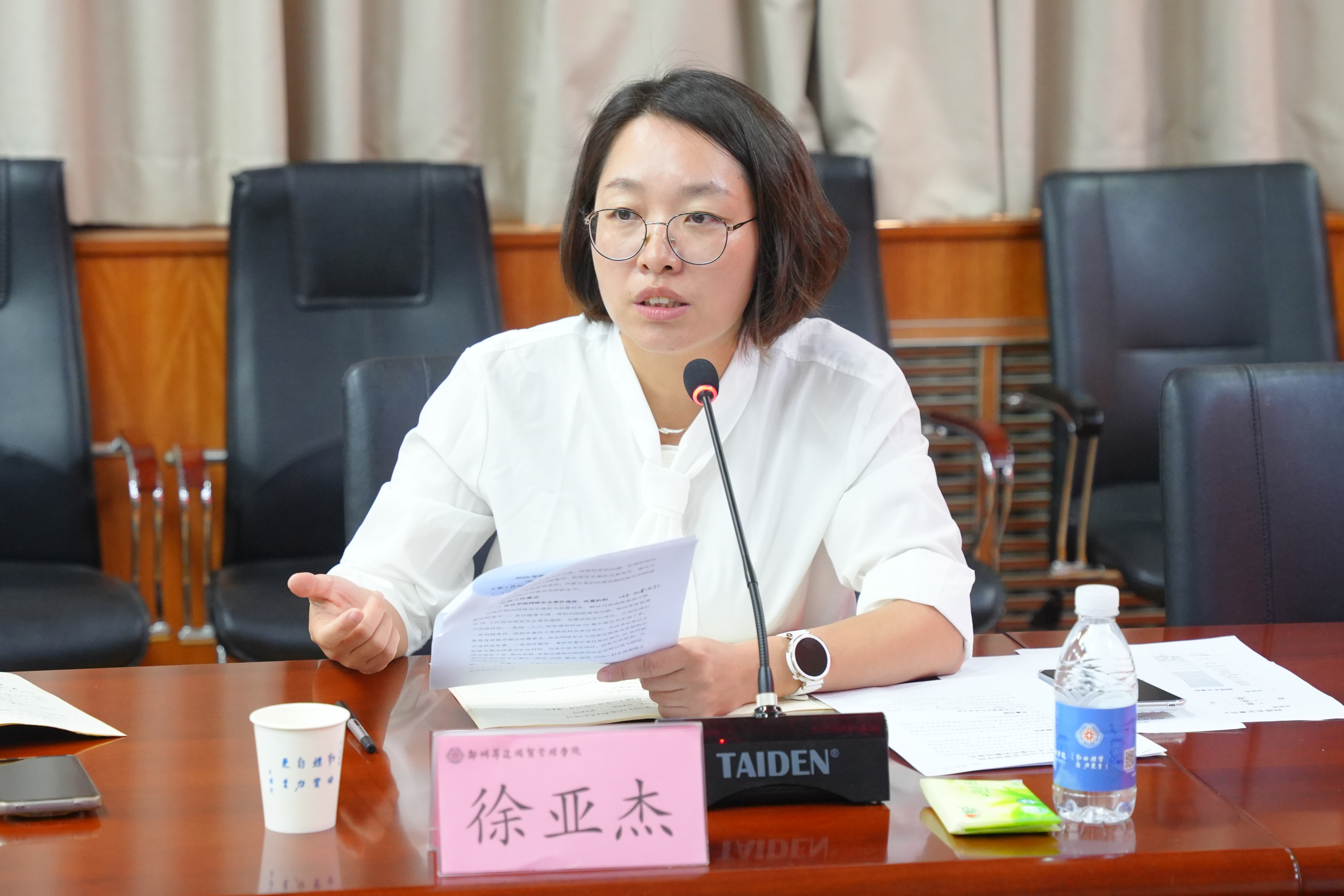 为全面落实网络安全工作的相关要求、进一步压实网络安全责任,总结复盘近期工作,部署下一阶段任务,9月26日,学校在第二会议室召开2025年第三季度网络安全工作会。校党委委员、副校长张其武出席会议并讲话。党委宣传部、融媒体中心、信息化处等部门负责人及各二级学院党委书记参加会议。