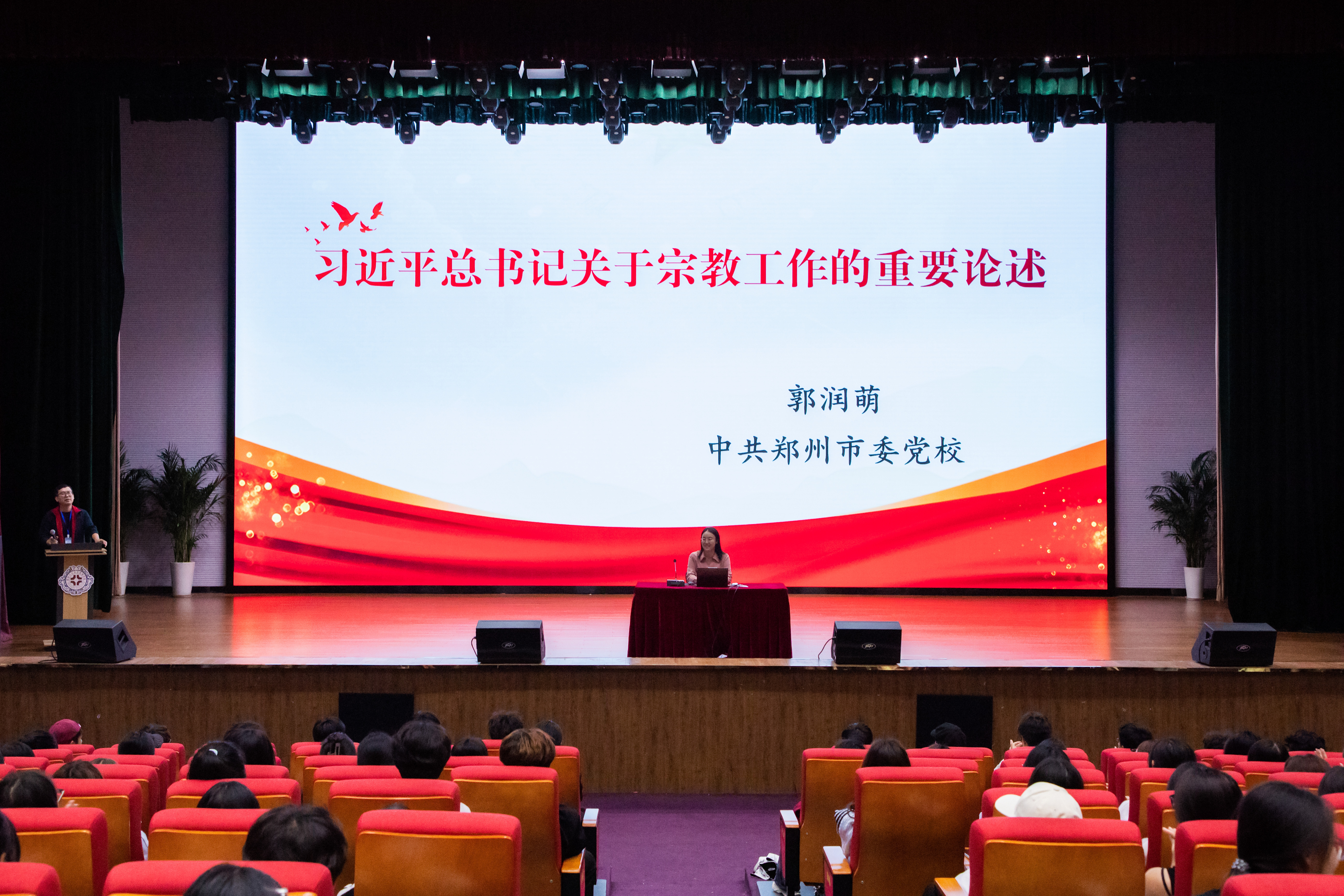 为深入学习贯彻习近平新时代中国特色社会主义思想,学习领会习近平总书记关于加强和改进民族工作的重要思想、关于宗教工作重要论述,贯彻落实中央、省委民族工作会议和全国、全省宗教工作会议精神,结合学校“铸牢中华民族共同体意识暨民族宗教政策法规宣传月活动”工作安排,9月28日下午,党委统战部邀请中共郑州市委党校统战理论教研部郭润萌老师以习近平总书记关于宗教工作的重要论述为主题举办了专题讲座。讲座在思源会馆举行,各学院新生辅导员、2025级新生代表参与聆听本次讲座。
