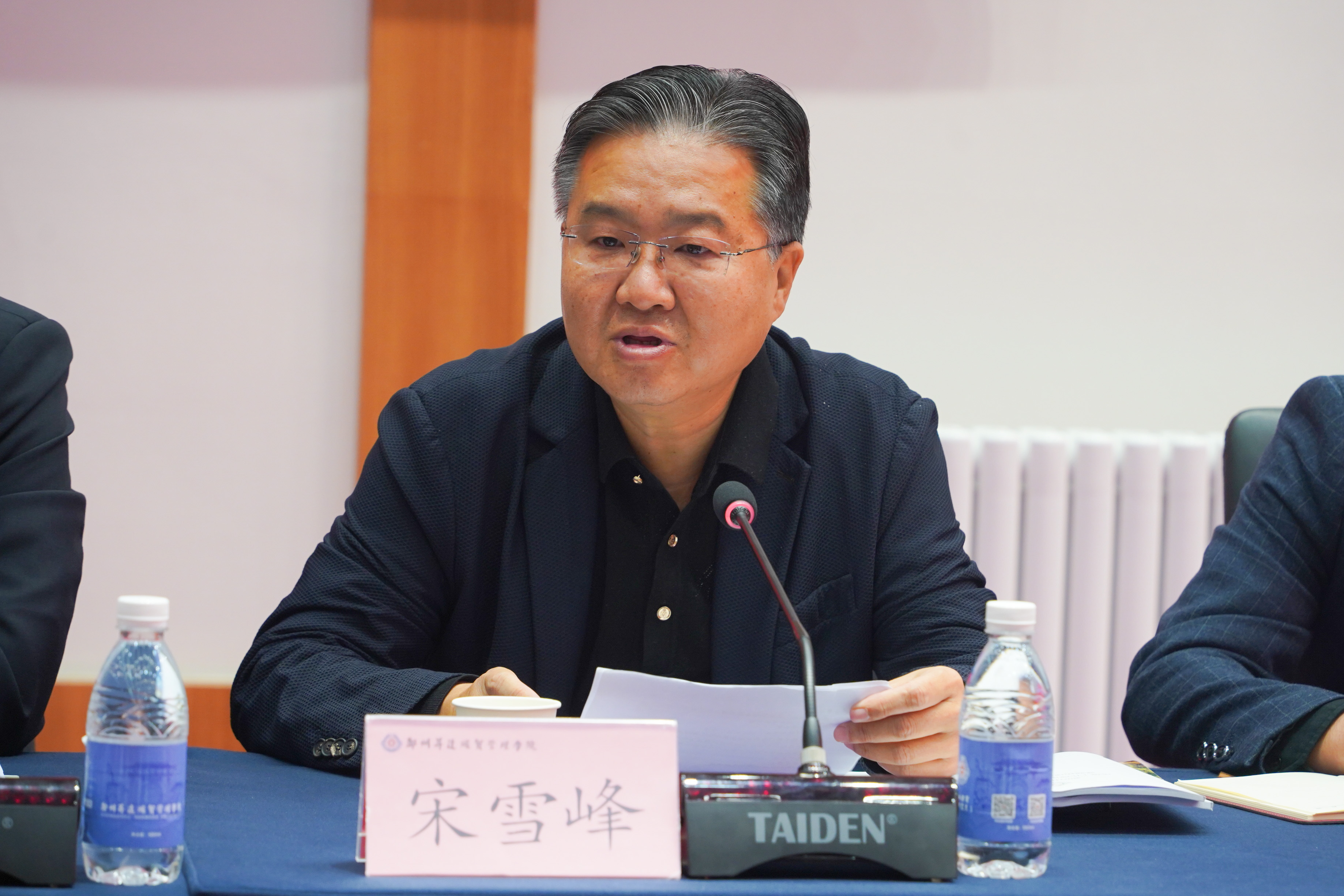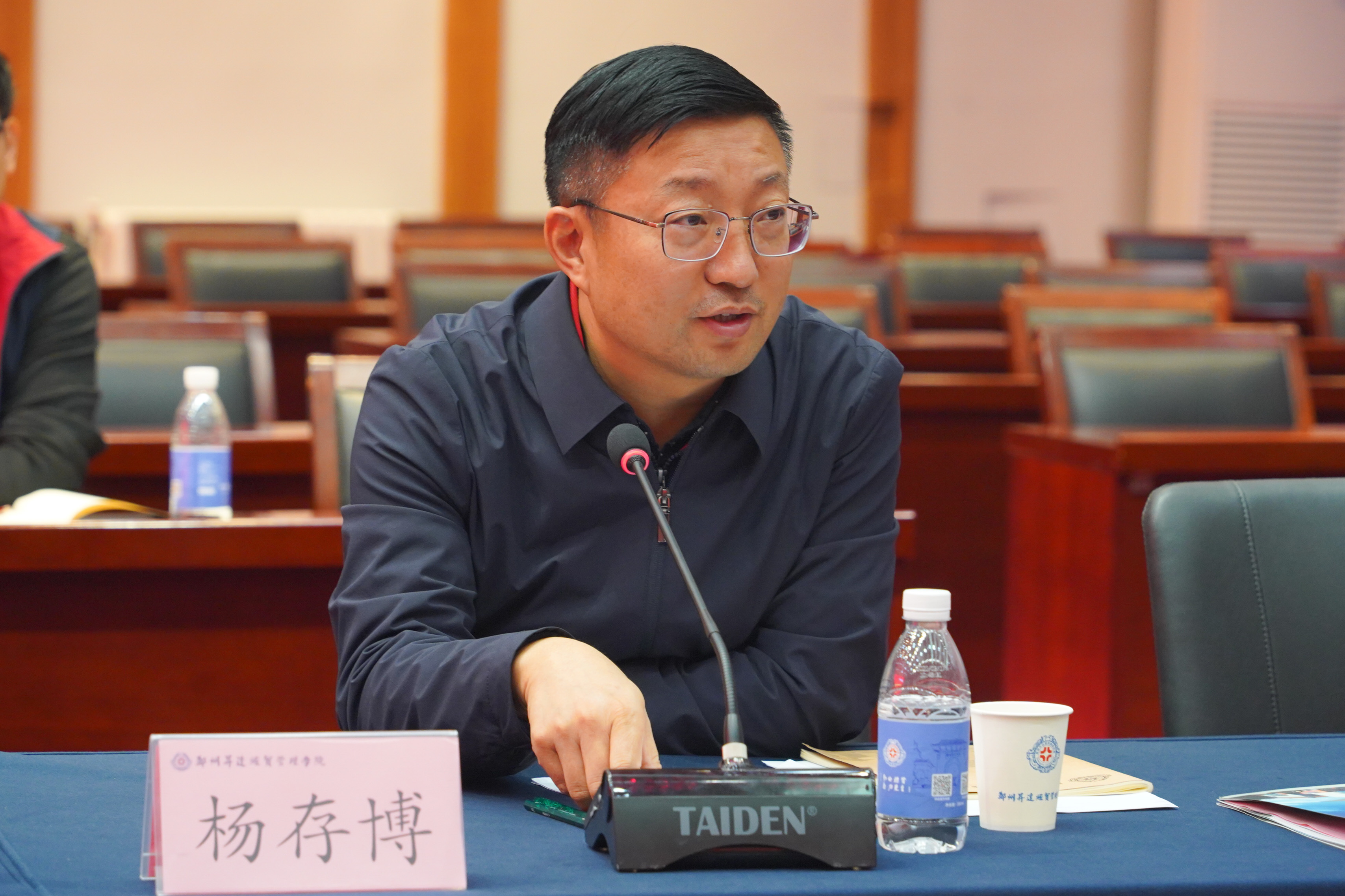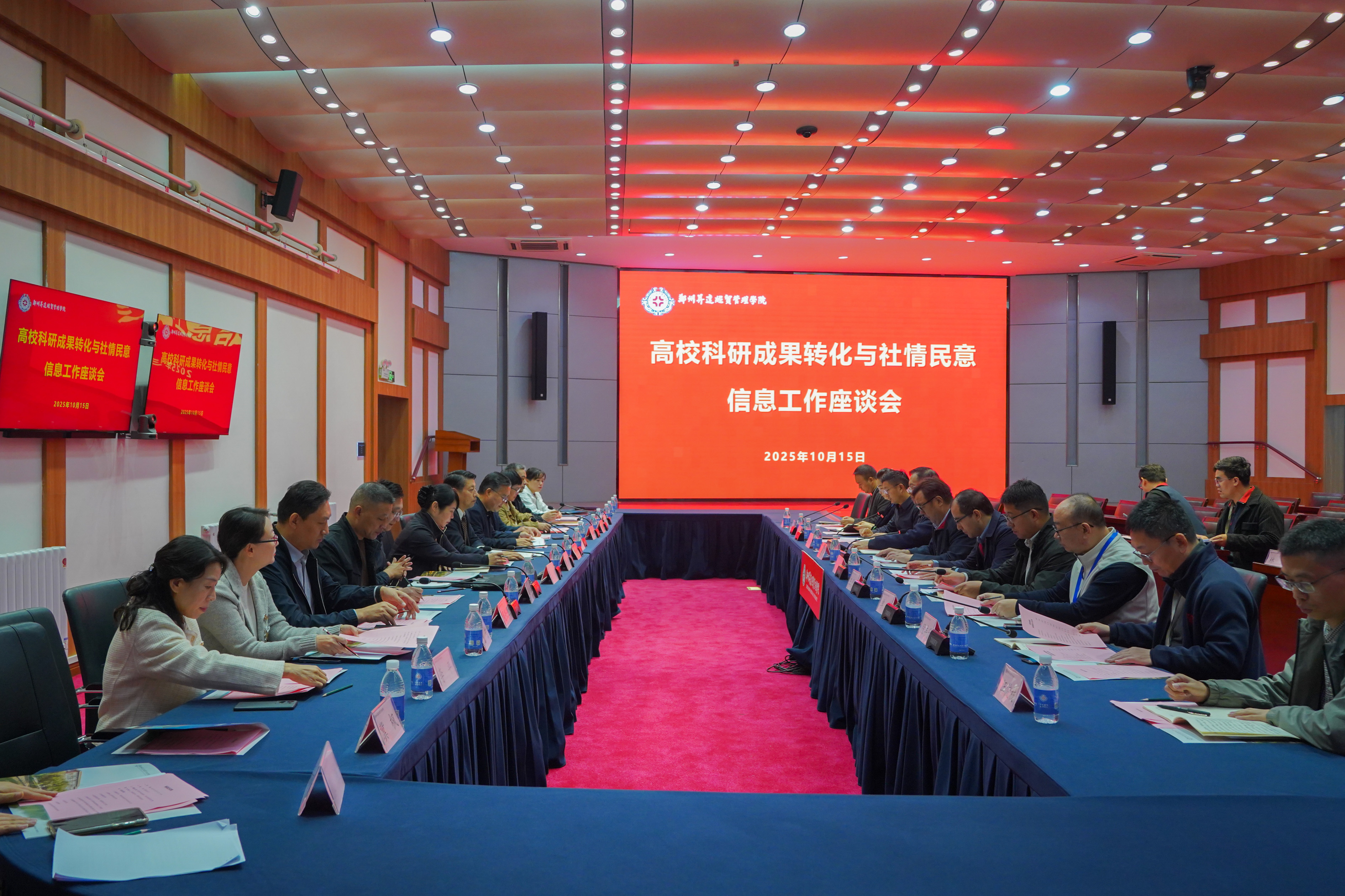 参观环节结束后,参会人员重回国际会议厅进行深度交流。首先学校科研处处长杨存博,校地合作处处长王彦雨围绕科研成果转化工作情况进行汇报,从科研项目立项、成果研发、校企合作转化路径到转化成效与未来规划等方面,全面展示了学校在服务地方经济发展中的积极作为。随后新郑市政协秘书长宋雪峰介绍了市政协及社情民意信息工作的开展情况,包括政协履职重点、社情民意信息收集渠道、研判机制与成果应用等,让学校对政协工作有了更系统的认识。