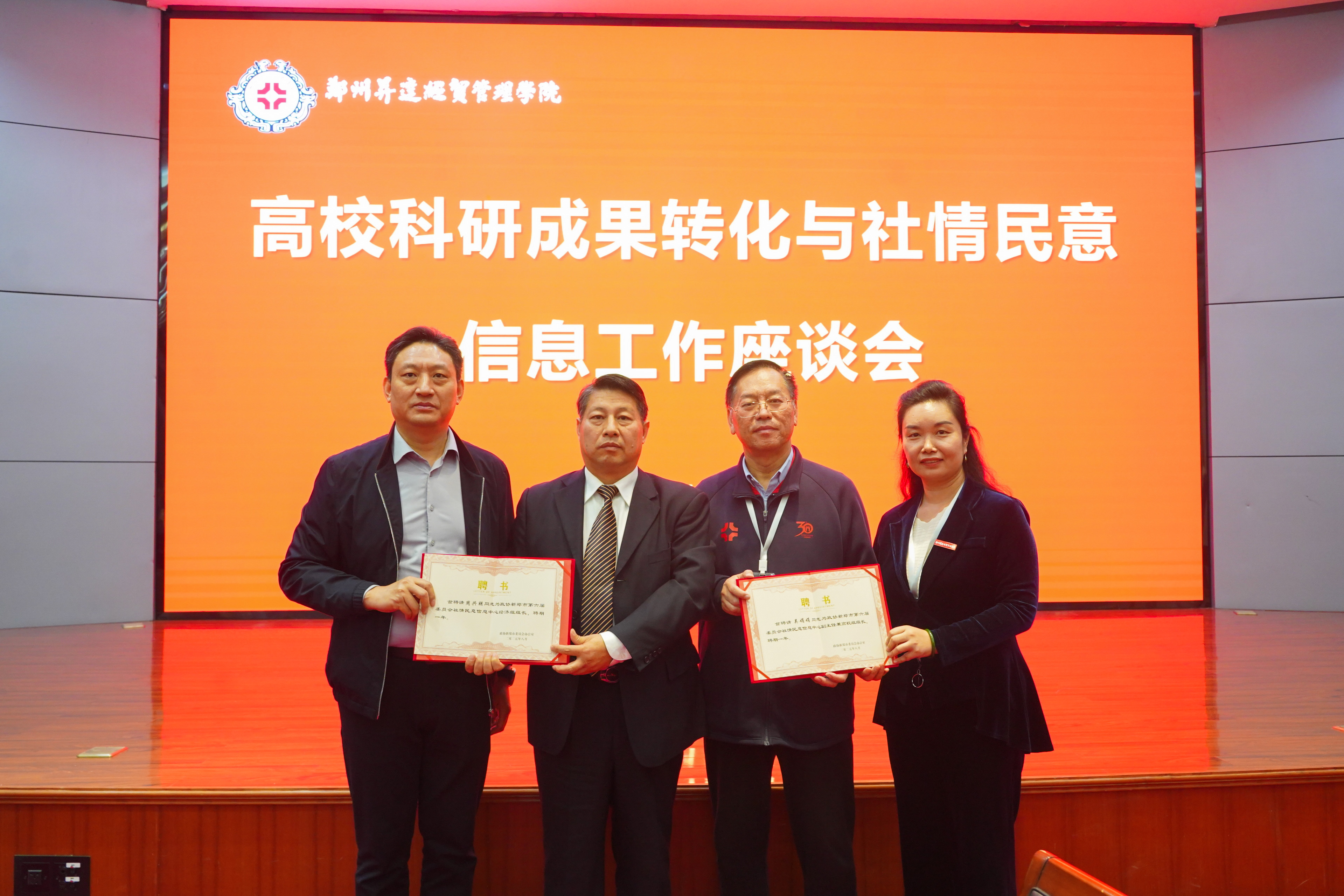 为进一步深化校地合作,充分发挥学院专家学者在社情民意信息工作中的智力支撑作用,我校吴娟娟老师被聘为政协新郑市委员会社情民意信息中心副主任兼高校组组长,刘建辉为其颁发聘书,并对受聘人员表示祝贺,希望他们积极履职为新郑市社情民意信息工作贡献智慧力量。