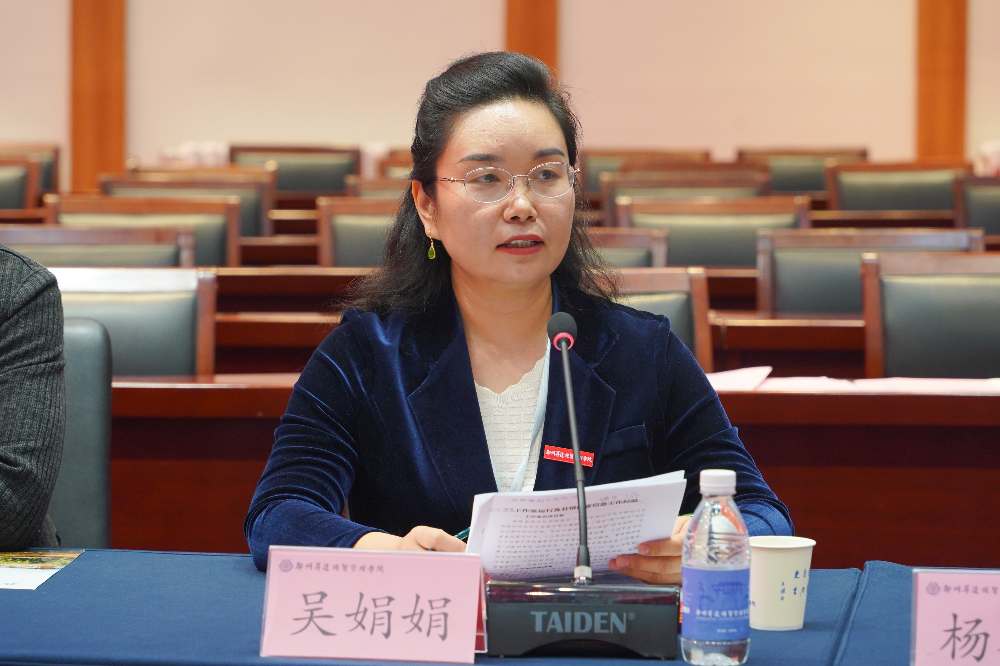 紧接着,继续教育学院副院长吴娟娟作为新郑市政协升达学院委员工作室代表,分享了工作室运行及社情民意信息工作经验。她结合具体案例,从工作室日常管理、委员履职方式、社情民意信息挖掘技巧与报送经验等方面进行讲解,为学校进一步完善政协委员工作室建设提供了宝贵参考。