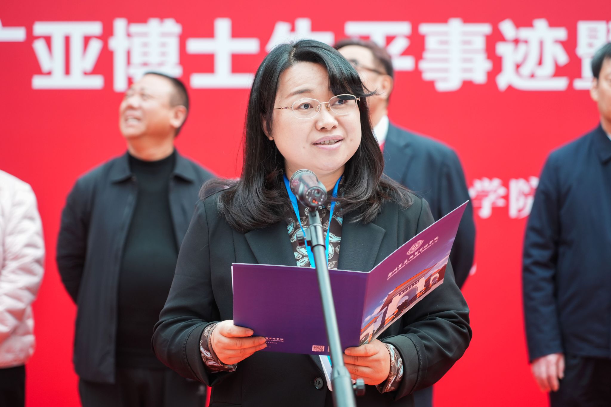 丹青绘初心,翰墨寄追思。10月31日上午,我校“杏坛丰碑 文韵流芳——创办人王广亚博士生平事迹暨书画作品展”在图书馆中厅隆重开幕。中原工学院纪委书记张爱华,新郑市龙湖镇镇长冯举涛,郑州市台资企业协会副会长林英源,韩国南部大学国际协力处处长具珉,龙湖镇泰美食品总经理柴雪云,我校董事长王新奇博士、校党委委员、副校长张其武等校领导与学校各部门主管、师生代表100余人齐聚一堂,共同追忆王广亚博士筚路蓝缕的办学之路,感悟其笔墨间流淌的深厚文化底蕴。开幕式由张其武主持。