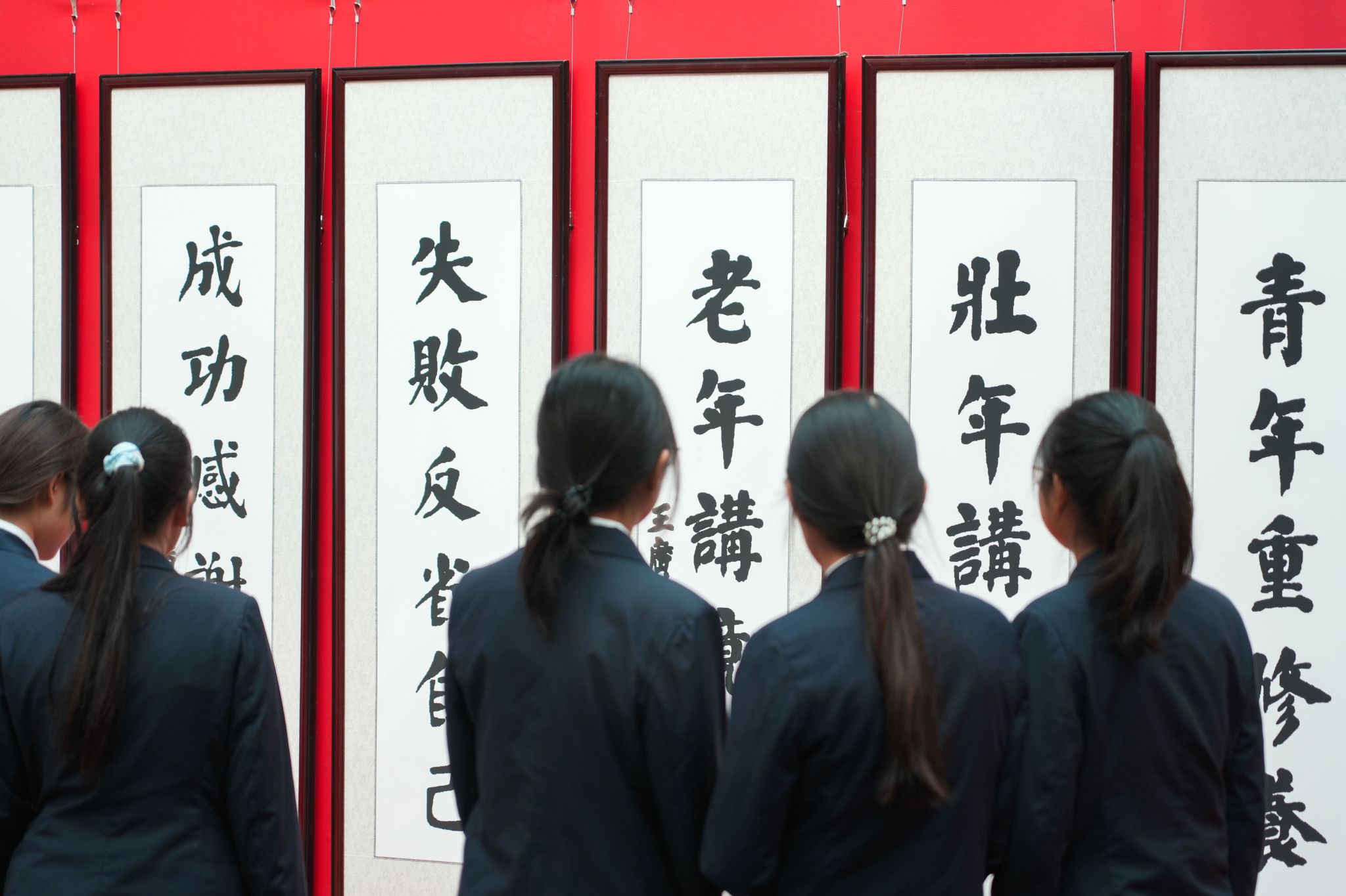 开幕式后,嘉宾、领导与师生缓步展区,驻足参观。展区分设“生平事迹”与“书画作品”两大展区。“生平事迹”展区以一幅幅珍贵影像、一页页办学文件、一本本获奖证书,深情勾勒出王广亚博士倾注教育的一生足迹。“书画作品区”则汇聚其书法画作,笔走龙蛇间尽显文人风骨,水墨氤氲中透出教育理念,令“文韵流芳”的主题生动可感,深入人心。