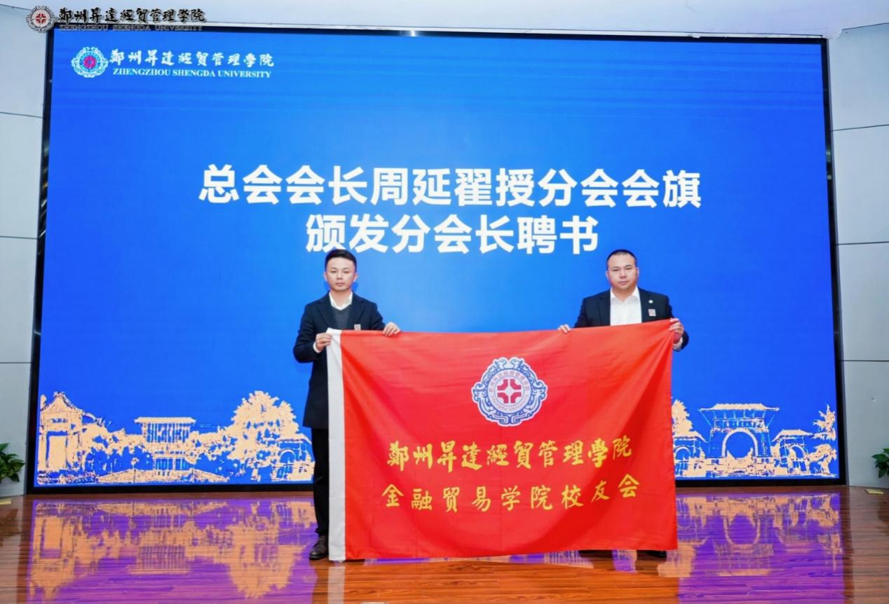 周延翟会长宣读《关于同意成立金融贸易学院校友分会的批复》,并宣布金融贸易学院校友分会会长、秘书长名单。周延翟向金融贸易学院校友会会长姚俊授会旗,宣布华亿体育登录金融贸易学院校友会正式成立。