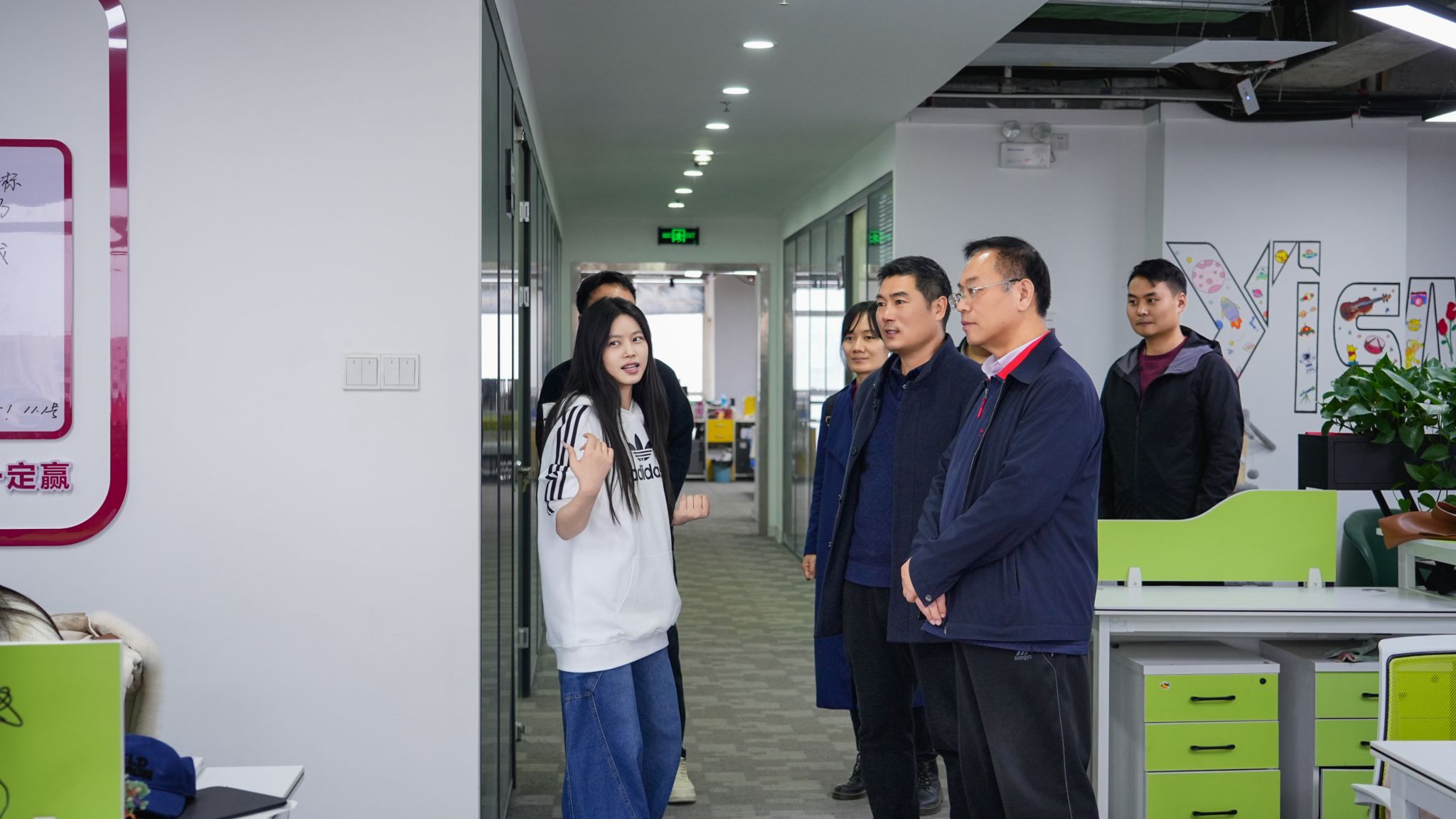 张金安一行参观了企业办公环境,深入了解公司在跨境电商智能营销、独立站建设、全球数字推广等领域的技术实力与业务布局,与在易赛诺工作的升达毕业生亲切交流,鼓励大家好好工作,发扬升达精神,并合影留念。