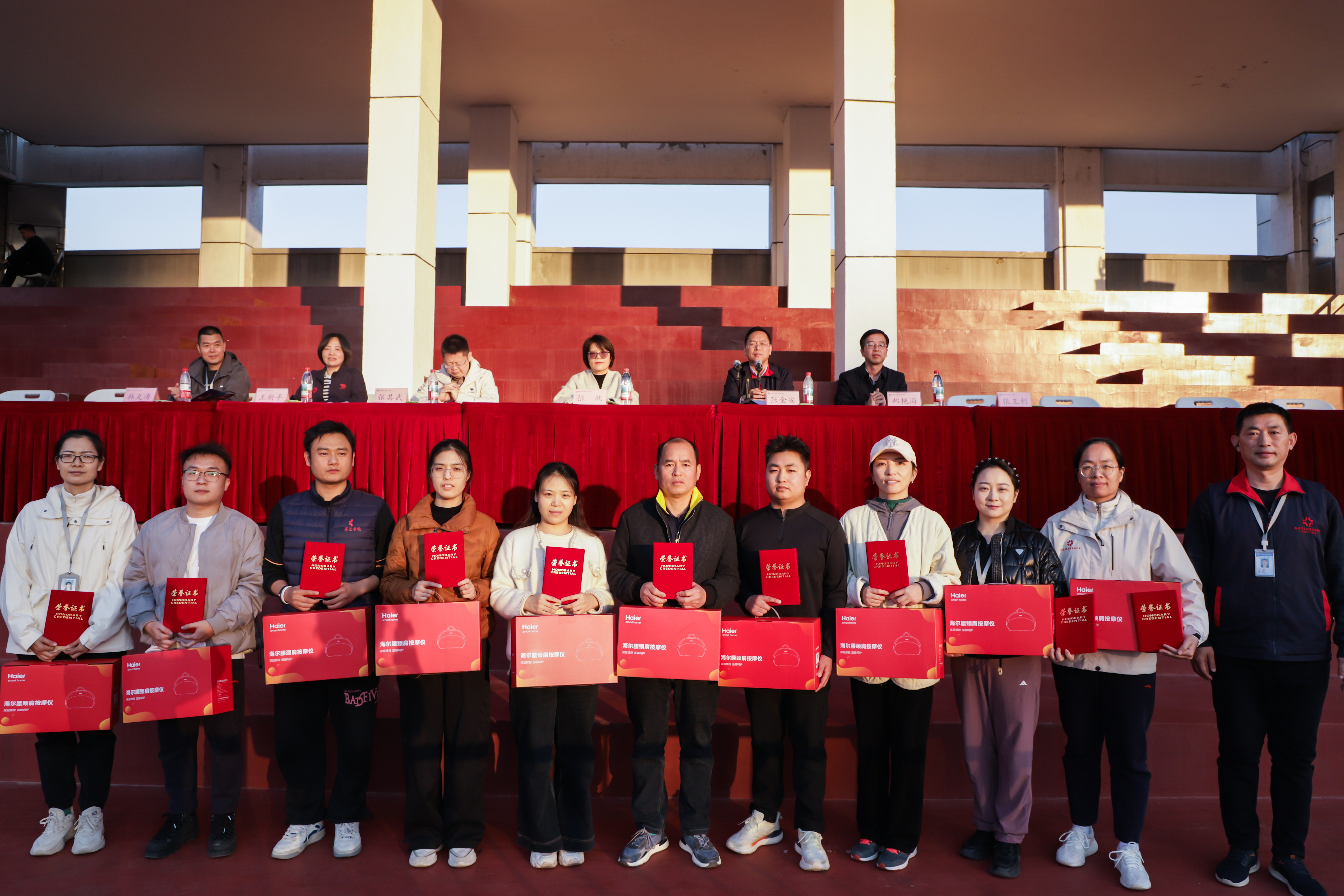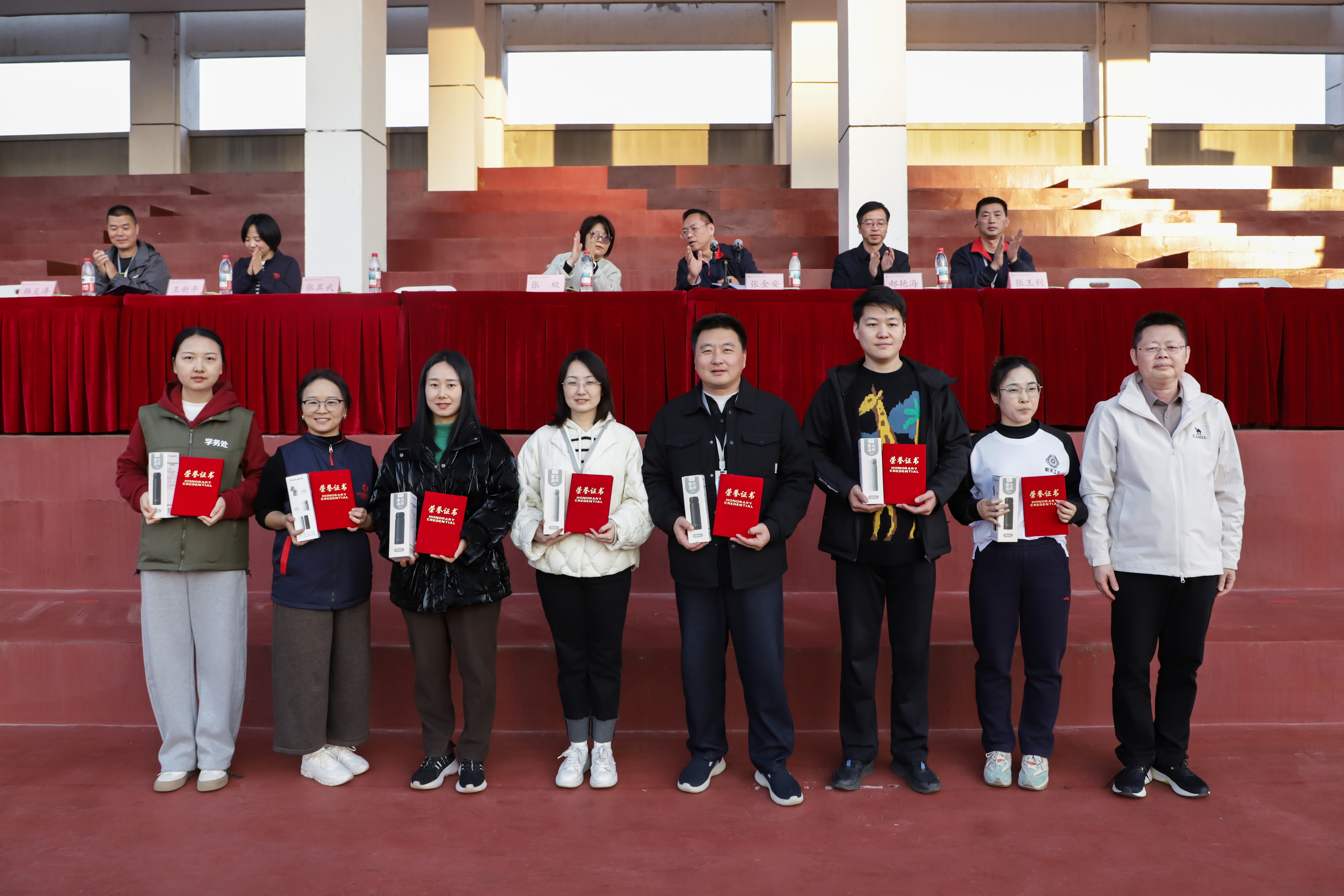 张王利宣布获奖名单,校领导和有关单位领导为获奖运动员和单位颁奖。