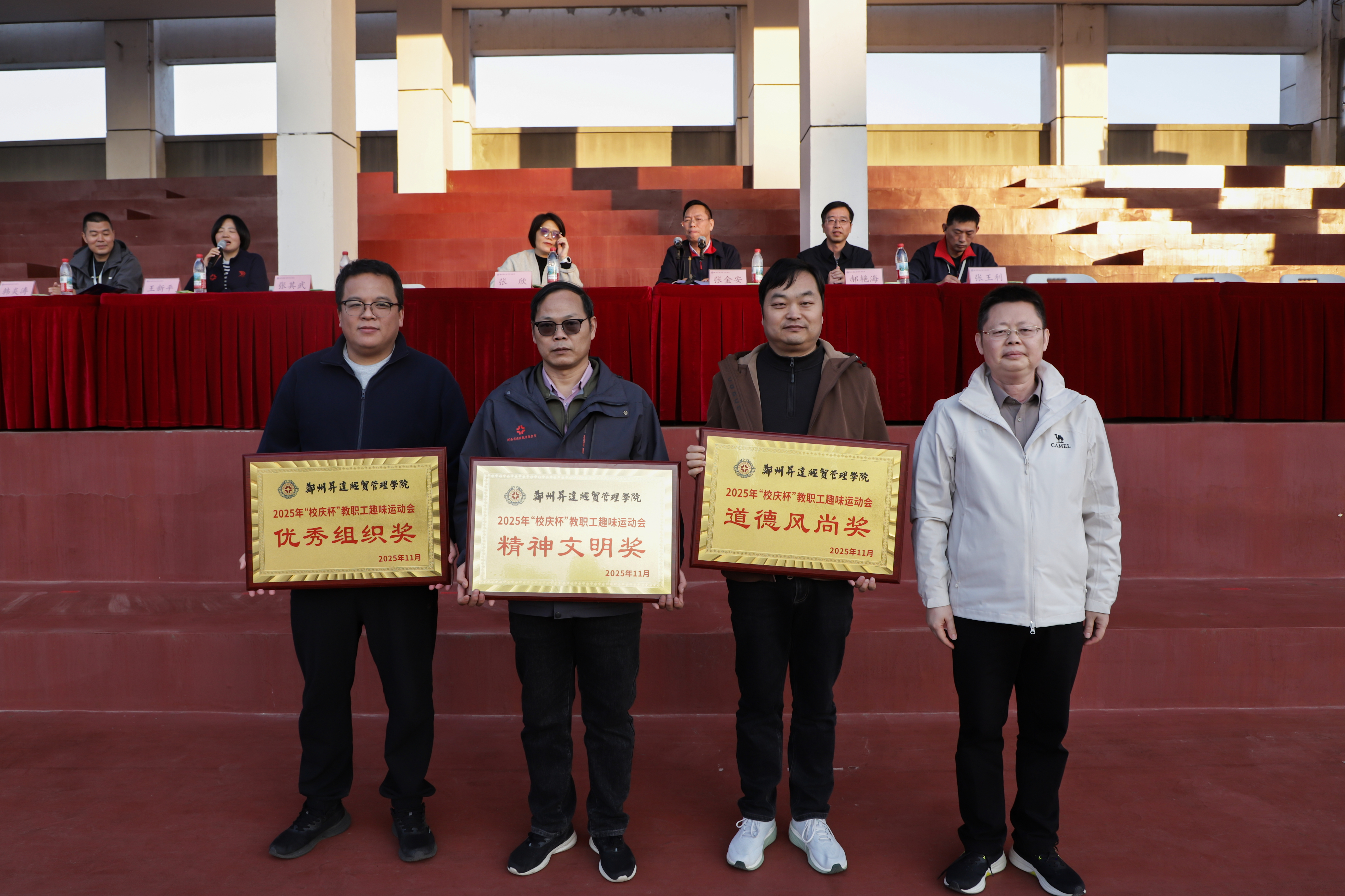 为丰富教职工文化生活、增进身心健康、凝聚团队奋进力量,11月20日,我校2025年“校庆杯”教职工趣味运动会决赛在学校田径场、篮球场、排球场等场地圆满收官。本次赛事由校工会主办、体育学院承办,总务处和健康中心协办,以“强身健体营造温馨团队心手相牵构建和谐校园”为主题,自11月10日启动预赛,经一周角逐后于20日迎来决赛。全校教职工踊跃参与,各分工会精心组队,赛场尽显蓬勃风貌。