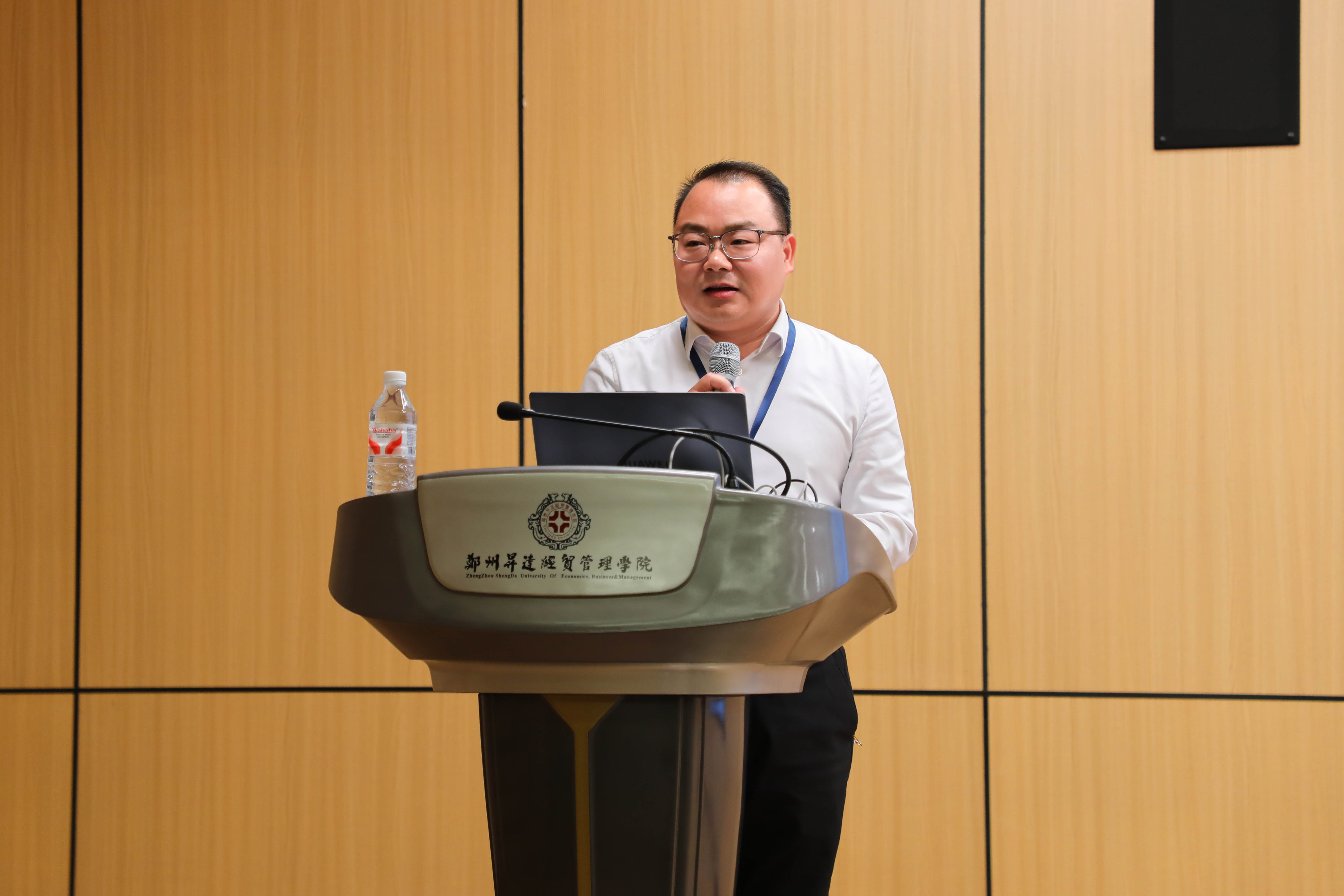 张加民发表讲话,他回顾了我省商务英语专业在专业布局、课程体系及产教融合方面取得的扎实进展。他强调,本届论坛旨在汇聚学界与业界智慧,共同探索专业高质量发展的新路径、新机制,推动教育理念、师资能力与发展路径的全面升级,为河南乃至全国培养符合未来社会需求的国际化商务人才。