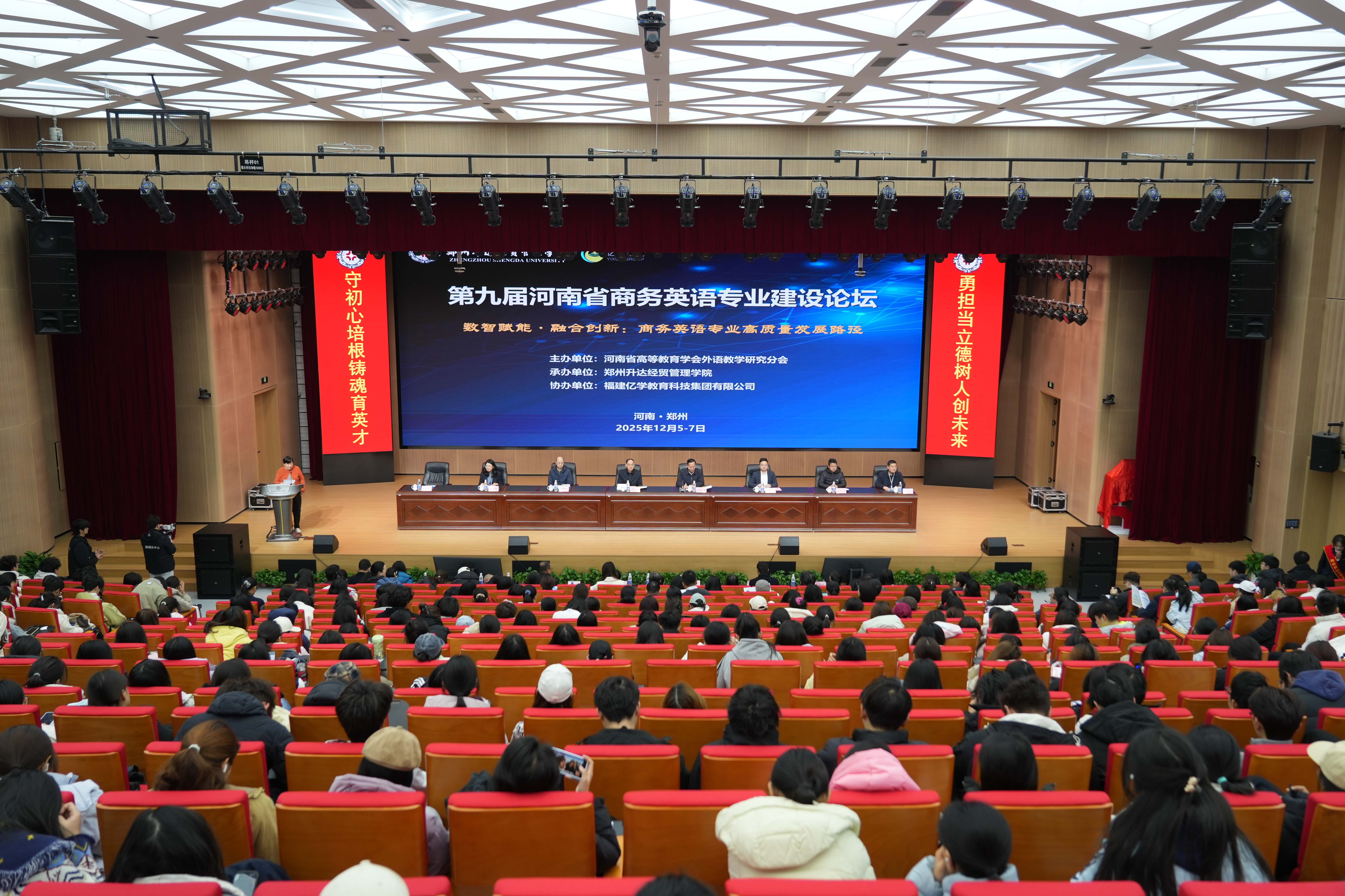12月6日,第九届河南省商务英语专业建设论坛在我校成功举办。本次论坛由河南省高等教育学会外语教学研究分会主办,我校承办,福建亿学教育科技集团有限公司协办,以“数智赋能·融合创新:商务英语专业高质量发展路径”为主题,聚焦人工智能时代商务英语专业的人才培养、课程重构与产学研协同发展。来自省内外高校的专家学者及师生代表共聚一堂,通过主旨报告、专题研讨等形式,共同交流探讨商务英语专业建设与发展,为河南省商务英语教育注入新动能。