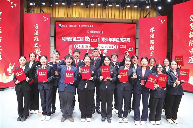 12月4日,由河南省关心下一代工作委员会指导,河南省高级人民法院、共青团河南省委员会、河南日报社、郑州铁路运输中级法院联合主办,河南法治报社与郑州工商学院承办的第三届“豫见法治”青少年学法风采展总决赛暨颁奖典礼在郑州工商学院圆满落幕。经过激烈角逐,我校文法学院法学专业蒋海静、任舒雅、刘果三名同学荣获“法学”专业组三等奖,王丽丹老师荣获“优秀指导老师”。