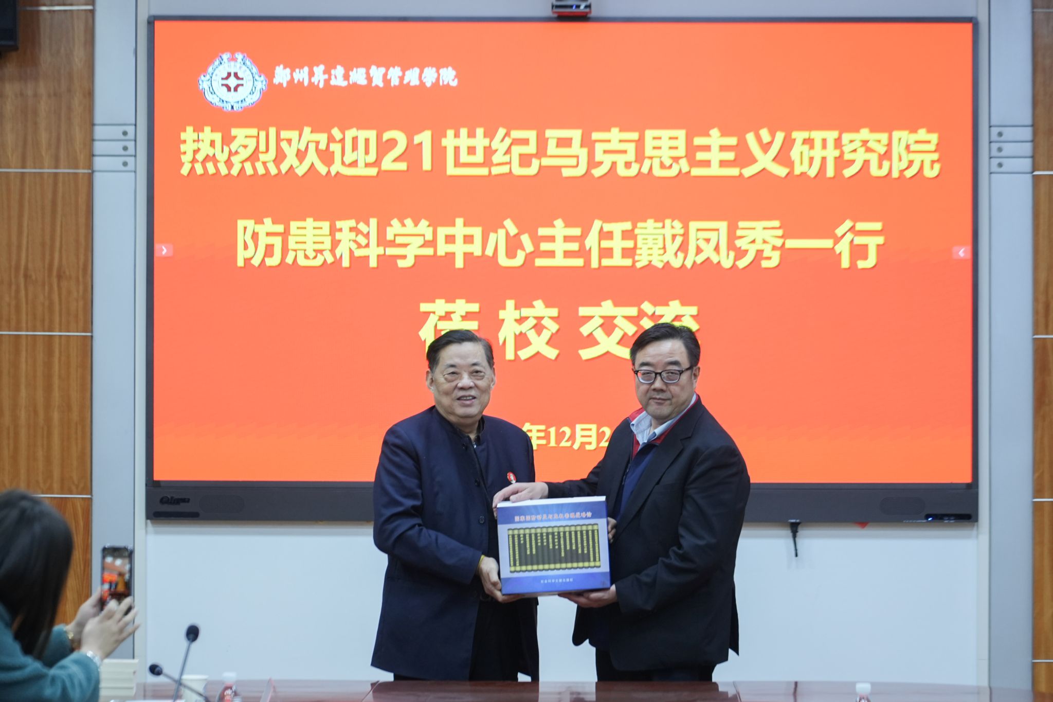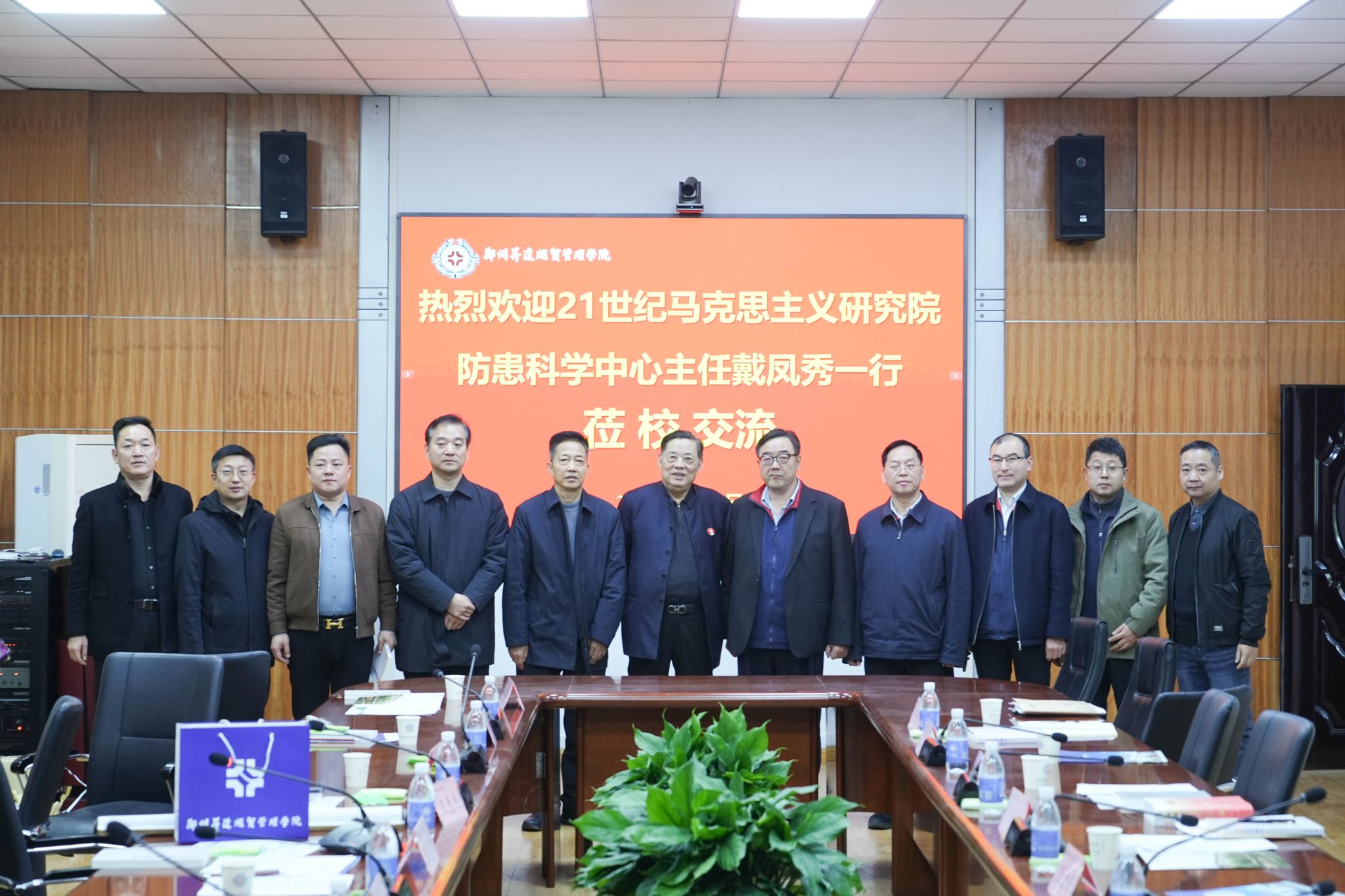 2025年12月24日,21世纪马克思主义研究院防患科学中心主任戴凤秀一行莅临我校参访交流。董事长王新奇博士,副校长张金安,登封校区党工委书记沈定军等校领导及相关职能部门负责人热情接待了来访嘉宾,座谈会在学校第二会议室隆重举行,会议由副校长张金安主持。