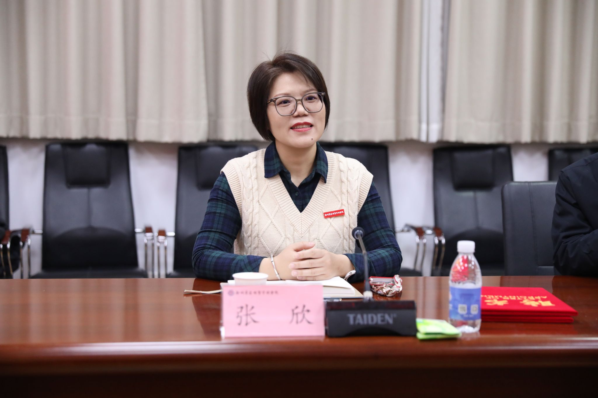 张欣在致辞中指出,学校与嗨购集团的合作渊源深厚、根基扎实,既承载着浓厚的校友情怀,更凝聚着双方对优质人才培养的共同追求与责任担当。她提到,过去一年,双方互动频繁,校领导及各学院曾多次带队赴嗨购集团走访调研,结合学校学科专业优势与企业发展需求,积极探索校企协同育人、共建发展的新路径、新模式。张欣进一步强调,学校创办人王广亚博士立德树人、白手起家、深耕教育的创业初心与奋斗历程,与嗨购集团创始人敢闯敢拼、务实创新的创业精神高度契合,这份精神共鸣成为双方深化合作的重要纽带。她表示,期待以此次参访为契机,进一步密切双方联系,推动校企合作从单一领域向多元协同、从浅层对接向深度融合迈进,实现资源共享、优势互补。