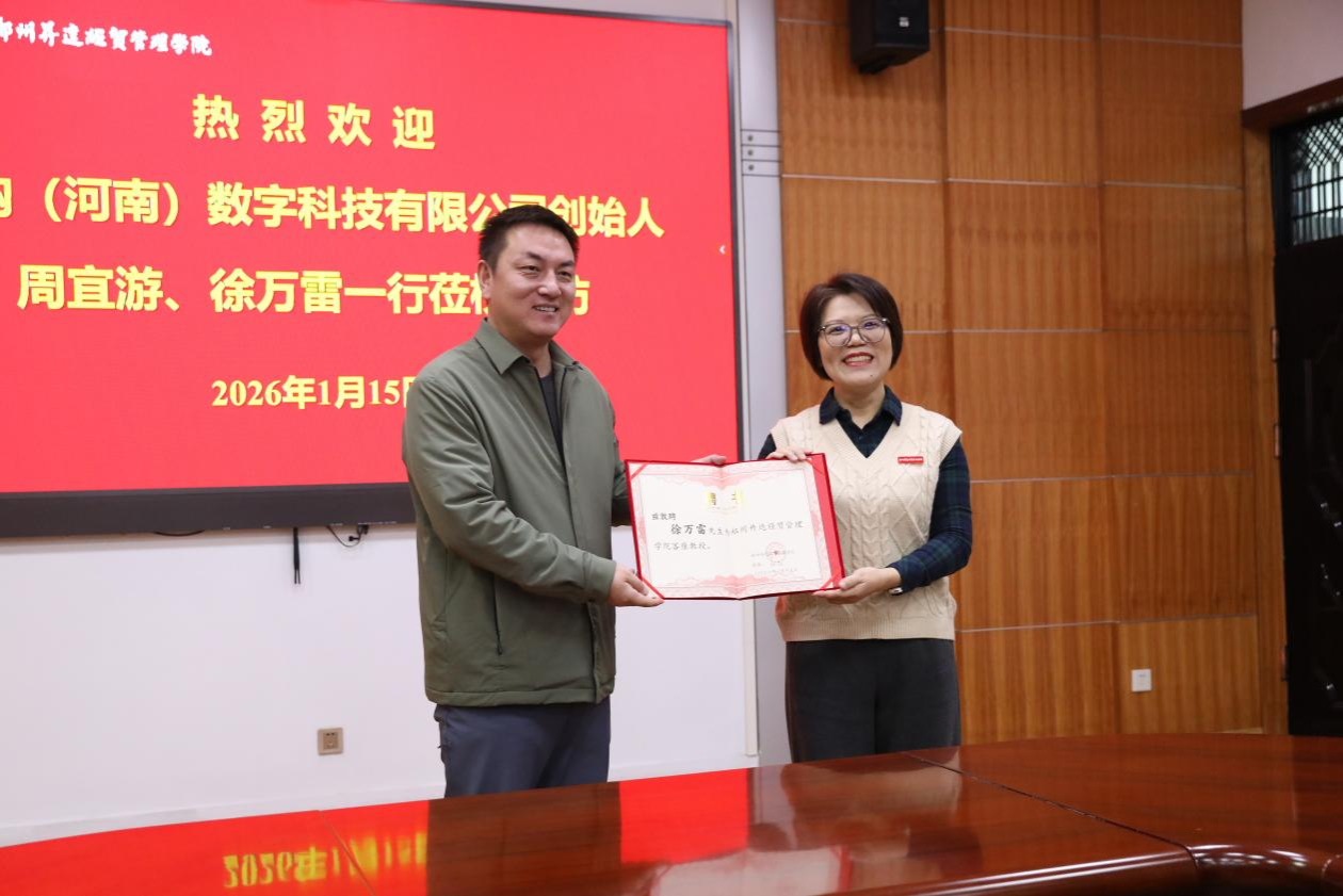 张欣代表学校向周宜游、徐万雷颁发客座教授聘书。