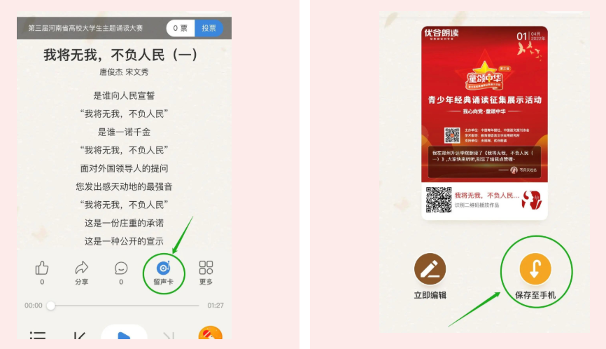 参赛步骤完成,如果你想把作品分享给更多朋友,可以生成留声卡在朋友圈发布哦