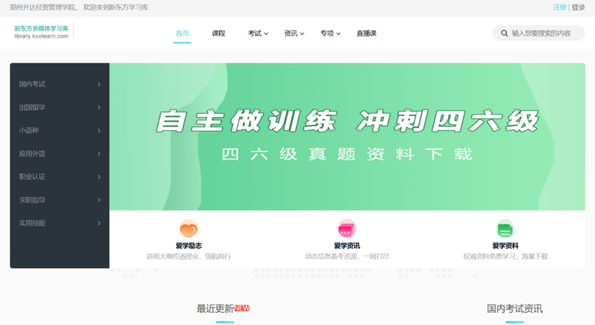 我校图书馆已开通“新东方在线多媒体学习库”资源,该数据库在暑假期间为师生提供漫游服务,不需要用户名和密码,在校外输入网址即可直接访问。