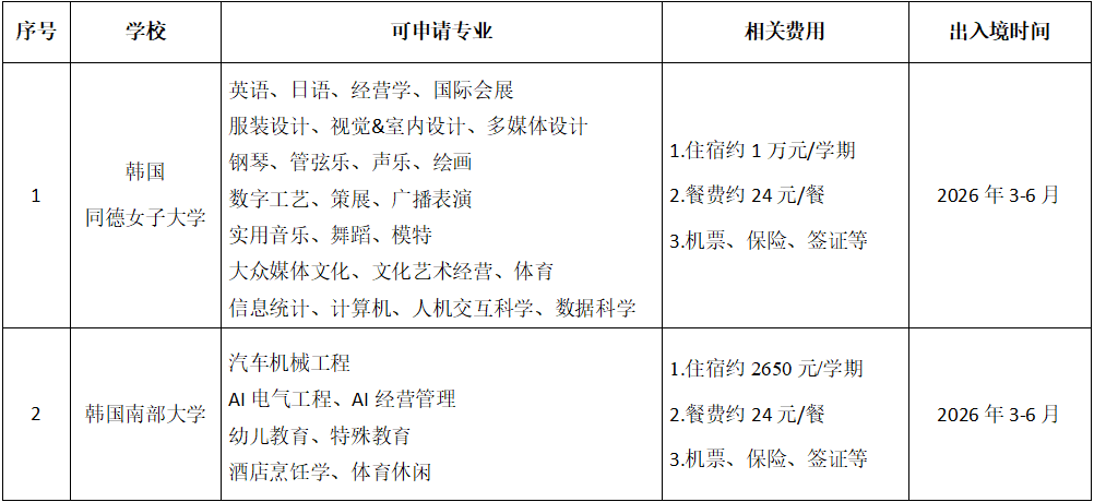 为促进我校与国(境)外高校学生间的学术交流与学习,提高学生的综合素质,激发学生创新学习的动力,我校每学期选派学生至国(境)外合作院校进行交流学习。现将2026年春第二批赴国(境)外公费交换生项目报名通知如下。