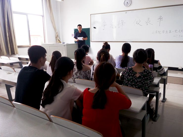 2017年9月22日,商学院学生第一党支部全体党员,在道镕楼421教室开展了“当先锋,做表率”主题学习教育活动,党支部全体党员参加了会议。