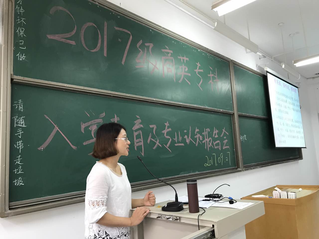新生入学教育及专业认知是新生认识大学教育重要性的一个关键环节。为了使商务英语专业本科生和专科生尽快地了解大学生活以及商务英语专业特色,使其真正成为“精英语、强听说和懂经贸”的商务英语复合型人才,商务英语教研室的老师们分别于近日在时金楼108为专科生和本科生举行了两场报告会。