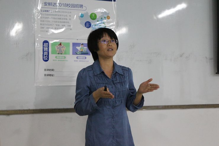 会议伊始,于维娜经理做了自我介绍。随后,播放了安鲜达PPT,向我院学生展示了安鲜达的公司理念:“安”即安全,“鲜”即新鲜,“达”即到达。接下来,将企业的规章制度,福利待遇,企业文化,现有产业结构,组织构架,人力资源政策等几个方面向同学们做了简单的介绍。最后,戴经理做了简单的总结,并诚挚的邀请物流管理专业的学生们加入安鲜达企业。此次招聘会就此圆满结束。