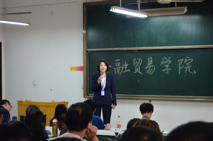 何伟院长代表金融贸易学院的全体教职工热烈欢迎张洁副校长的光临,也感谢校领导在我院的校企合作、经管实验中心的建设和教学3号楼的重新改造给予了大力的支持和帮助。何院长希望全体教职工能够坚持贯彻“合规、合作、付出”的工作原则,教师和学生、教师和辅导员之间都能做好沟通交流,有经验的教师尽力帮助新聘教师站好三尺讲台。