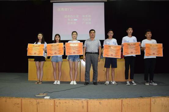 会议在共青团团歌声中拉开帷幕。经过一年的共同努力,外语系团委学生会取得了一个又一个成绩,涌现出来了一批认真负责,工作能力强的学生干部,行政秘书惠凯赟老师宣读了优秀部门、优秀部长、优秀干事和在运动会上取得优异成绩的运动员名单。在场的老师们为他们颁奖,并合影留念。紧接着由团委优秀部长通讯部朱妍洁、体育部邰亚奇以及优秀干事团委办公室祝晶晶、学艺部胡玥分别上台发言,总结了他们在团委学生会的经历和收获,回忆他们在部门的点点滴滴,他们讲到不管在什么部门,无论是什么工作,能够与其他人一起团结互助,尽心尽力的完成,这些经历都将成为她们最宝贵的经验,感谢团委学生会教给了他们很多。