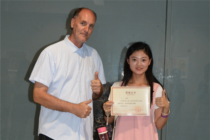 开幕式后,杰瑞老师为此次参展作品中作品留校的12名同学颁发了荣誉证书,并举行了小型的作品研讨会,大家各抒己见,分别讨论的此次课程的收获和建议,最后合影留念。