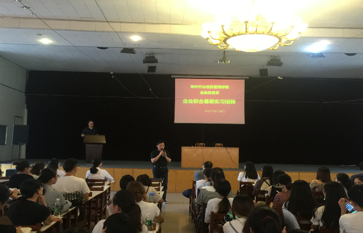 为了深化学生对行业的认知理解,提升专业技能及实践操作能力,服务于应用型人才的培养目标,金融贸易系根据所开设专业情况,大力开展实习实训及就业基地建设, 为学生提供专业实习的平台。经过前期实地考察及精心筛选,金融贸易系联系5家相关企业,于2017年6月30日下午在龙湖报告厅,针对2014级本科生展开暑期专业实习企业联合宣讲招聘活动。