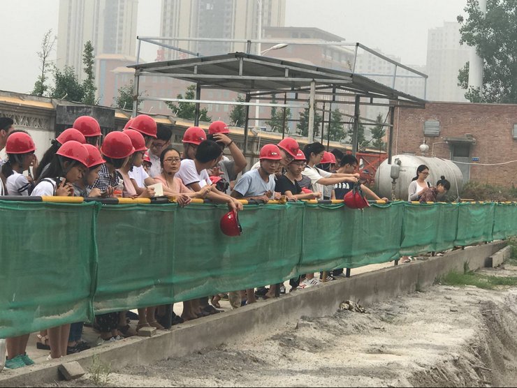 在6月27日,所有实习学生乘坐大巴车,前往校外正在施工的 “法兰原著”项目进行实习,进行了我们的第三次实训,两名老师与现场负责人接洽好进入工地的注意事项;随后项目部老师便向我们介绍了车轮清洗机、塔吊等多个机械,并带领我们观看了整个小区的布局,讲述了工程造价相关的知识;最后,大家合影留念。
