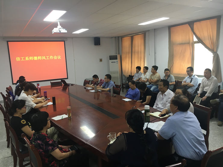 6月1日下午,信工系在资讯楼104召开师德师风建设专题会议。信工系主任李学桥教授,系党总支王新平书记,副主任白鑫副教授及全体教师参加了会议。会议由信工系党总支王新平书记主持。