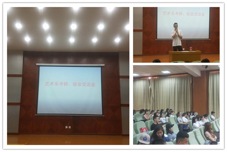 会议伊始,行政秘书曹华莹老师就艺术系2017届毕业生的就业情况和考取硕士研究生的情况进行了讲话,指出了当前的就业形势以及我系在考研和就业方面取得的成绩。接着,分别请出了今年的就业典型和考研典型的代表们发言,就他们各自的就业和考研经验给在座的大三学生进行了详细的经验交流。