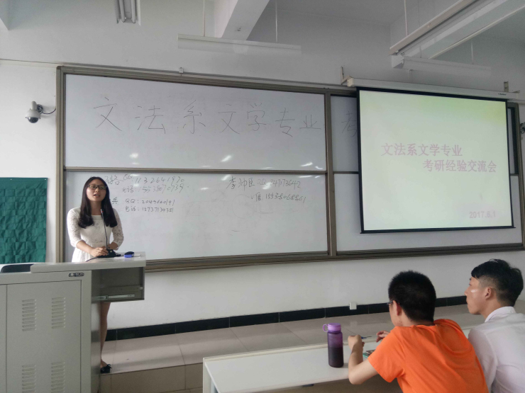 为进一步提高我系文学专业学生考研热情,明确考研目标,掌握更多考研技巧,进一步了解考研信息,6月1日13:00,我系在道镕楼519举办了“文法系文学专业考研经验交流会”。本次交流会诚邀2017届新闻专业的司征、李帅臣,汉语言文学专业的王帅兵、姚如月、邹璐五名优秀毕业生做分享。会议由15级团总支书记张明奇老师主持,全系大一大二大三新闻、汉本班同学参加。