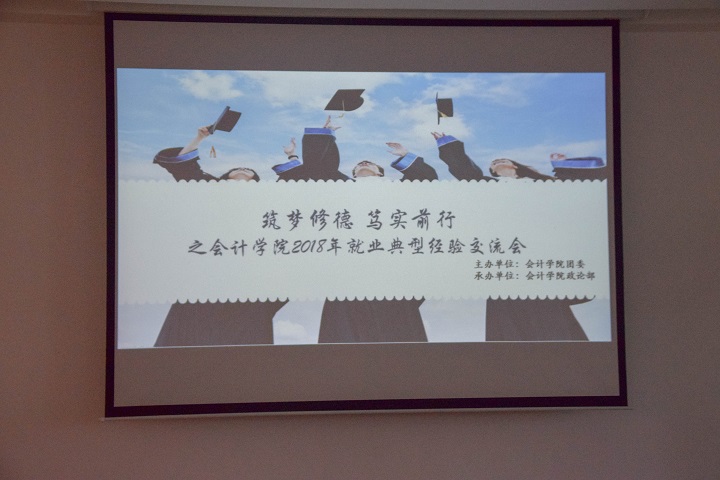 为欢送2018届毕业生,传承会计学院优良作风。6月12日下午5:00,由会计学院团委主办,政论部承办的会计学院“就业典型交流会”在四号楼108教室如期举行,部分优秀毕业生代表与部分学生参与了此次交流会。