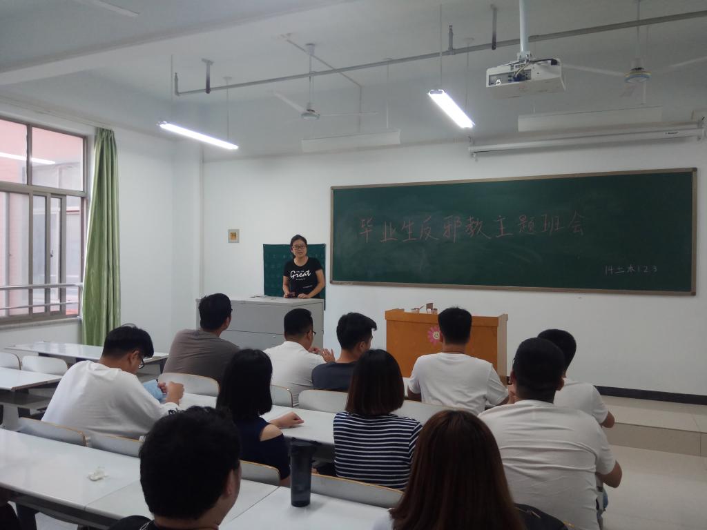 为了使2018届毕业生进一步提高反邪教意识,加强毕业生反邪教宣传教育,进一步在毕业生中普及反邪教知识,不断增强广大毕业生识邪、拒邪、反邪能力,6月11日下午,建工学院体育学院党总支毕业班辅导员利用班会认真开展反邪教教育工作,2018届毕业生参与了本次活动。
