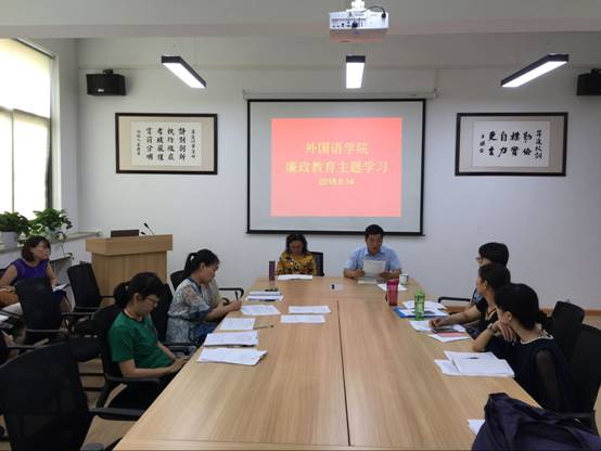 为加强反腐倡廉和教职工的师德师风建设。6月14日,外国语学院在院会议室召开了全体教职工师德师风和廉政建设工作会议,开展廉政教育学习活动。会议由院党总支书记石皓召同志主持,院长张梦教授及全院教职工参加了此次学习。
