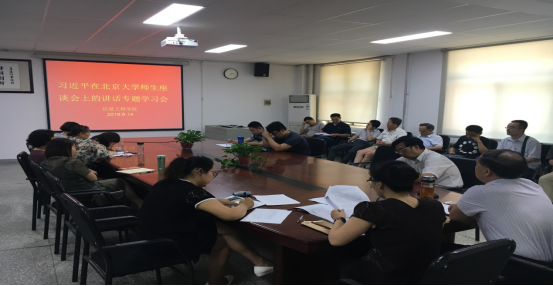 2018年6月14日下午,信息工程学院组织全体教职工对习近平总书记讲话专题进行学习。其中包括《习近平总书记在北京大学师生座谈会上的讲话》和《习近平总书记在纪念马克思诞辰200周年大会上的讲话》。这次学习由党总支王新平书记主持。