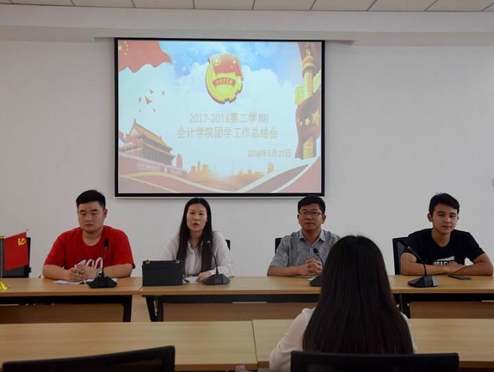 随着2017-2018学年的即将结束,会计学院本学期的团学工作也即将告一段落。为此,会计学院于6月27日下午1:30在4号楼209召开了2017—2018第二学期会计学院团学工作总结会,会议由会计学院行政秘书兼团委书记陈刚老师主持。