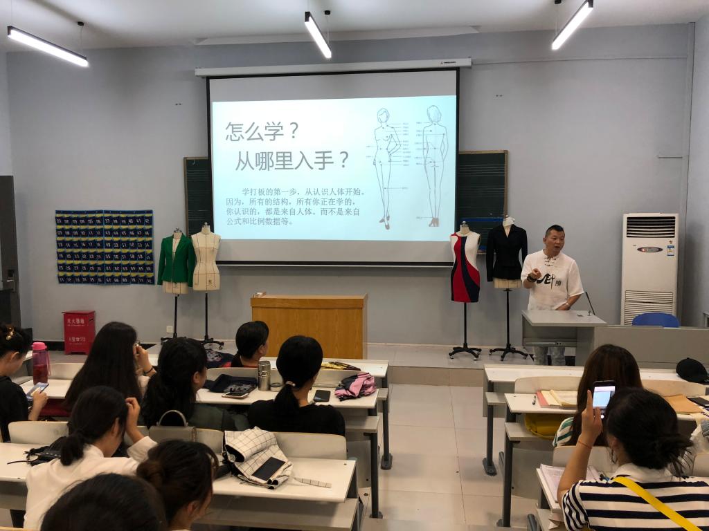 2018年6月28日下午,在服装教研室主任吴则斌的组织下,艺术学院服装与服装教研室有幸请到了创牌版型技术研发机构创始人杜军营,于艺术楼104室为服装与服饰设计专业全体师生进行服装版型讲座,我院服装与服饰设计全体师生对杜军营老师的专业讲座表示热烈的欢迎。