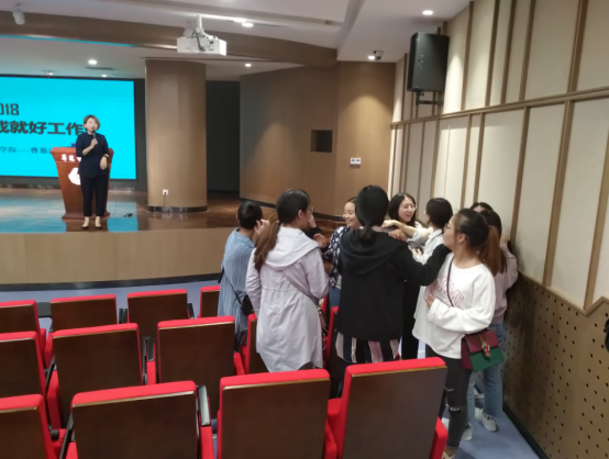 活动伊始曹慕汶女士围绕主题,从六个方面进行讲述。首先依据丹尼尔戈尔曼《情绪智力》一书介绍了什么是情商,为了让大家体会到情商的重要性引导同学们做了互动小游戏;接着介绍情商的由来,让同学们对情商有一个基本的了解;然后又从个人、家庭生活以及事业三个角度来分析情商的作用,阐述了情商与智商的关系,从而归纳出情商的概念;最后阐明如何培养和开发情商。