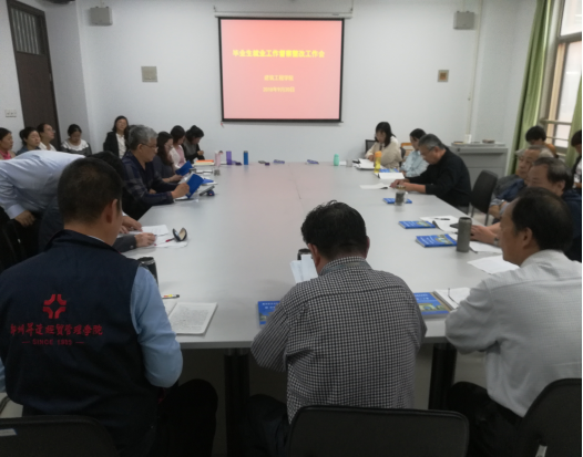 韩炎涛书记强调就业工作是学校的一项系统性工作,学院领导一直都高度重视,结合往年毕业的就业情况,主要对以下四点进行了强调。第一、教学部门和学生管理部门应加强学生专业技能、就业技能、就业理念等方面的指导;第二、为了给毕业生提供更多就业机会和工作岗位,发动我院全体教职工利用身边人力资源,积极为毕业生推荐或提供就业岗位;第三、毕业生毕业设计提前入手,毕业设计指导老师合理安排好学生毕业论文指导时间,让毕业班的学生更快、更好的融入毕业实习工作中;第四、我院全体教职工,统筹协调院部的各方资源,全力做好院部毕业生的就业工作。