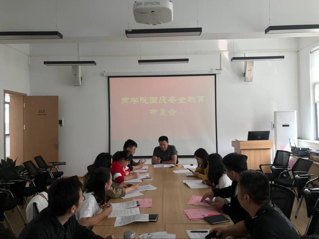 9月26日下午,商学院在2号楼315会议室召开国庆安全教育部署会,会议由商学院行政秘书郭峰老师主持,商学院全体辅导员参加了此次会议。