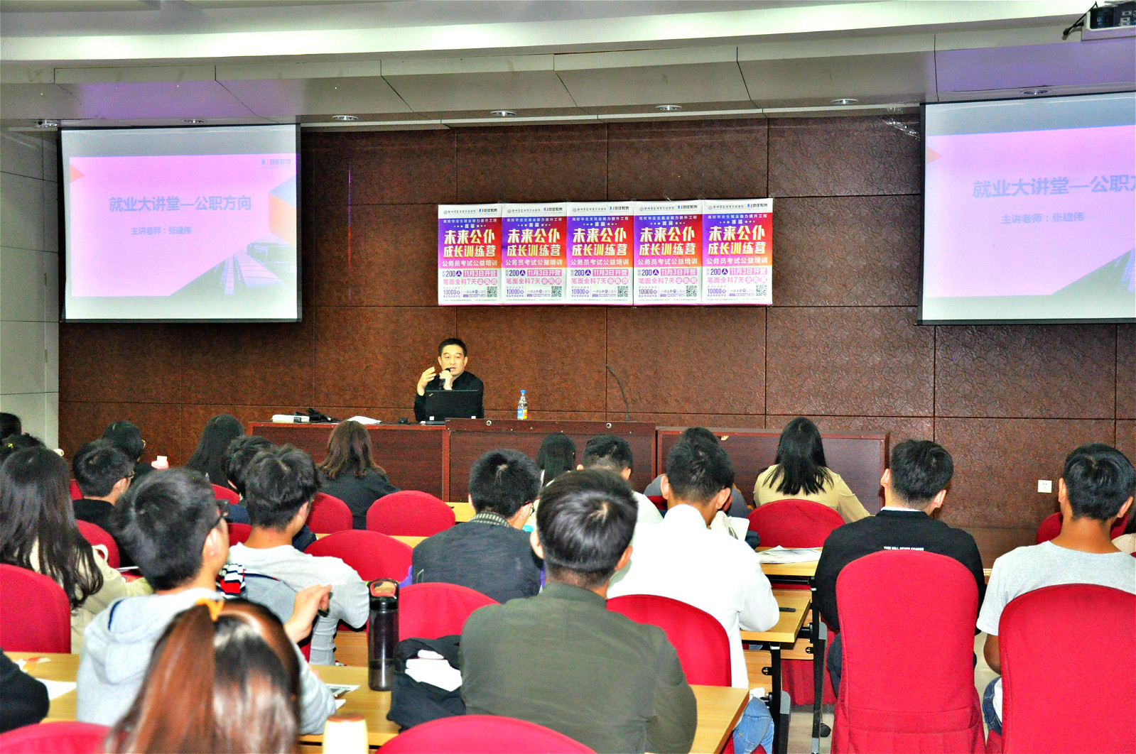 10月11日晚18点,我校首届“未来公仆训练营”开营,作为训练营开营之作的《2019公务员考试政策解读及对策》公考讲座顺利举行。我校2019届200余名毕业生参加了未来公仆训练营开营仪式,并参加了讲座。