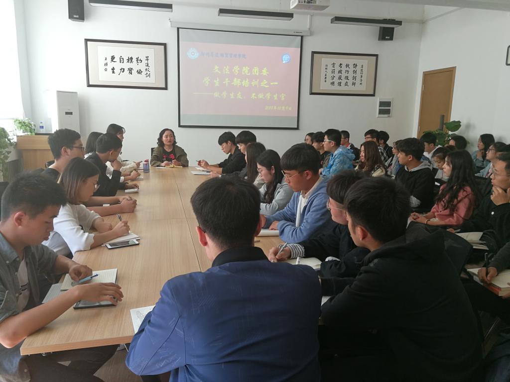 此次培训旨在端正学生干部工作作风,激励学生干部以更加积极的态度面对未来的工作,以优异的成绩和优良的作风为文法学院学生做出榜样!(供稿人:文学中心 邹诗佳)