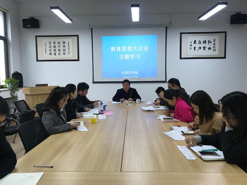 依据外国语学院开展教育思想大讨论工作的部署计划,11月6日下午,辅导员学习组在院党总支书记石皓召同志和行政秘书惠凯赟同志的带领下,认真组织了第一次全体学习。