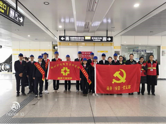 2018级团总支书记张吉祥老师与地铁站的值班站长朱站长已经协调好了同学们的具体站位和分工,同学们精神满满,干劲十足。早上9点左右,地铁站迎来了乘车高峰期,当拥挤的人流进入地铁候车区后,乘客们仿佛受到了信工小石坝们的感染,都能够整齐有序的排队候车,排队购票;在乘客不知道该坐哪部电梯时,信工小石坝们第一时间帮助乘客;在列车即将进站的时候,信工小石坝们提醒大家先下后上文明乘车…在信工小石坝们和车站工作人员的共同努力下,车站内显得井然有序。信工小石坝们让升达的文明之花在双湖大道地铁站绽放,信息工程学院的“小蓝帽”也成为双湖大道地铁站一道靓丽的风景线。