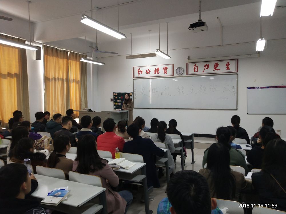 为了营造文明礼貌、舒适温馨的校园文化环境,积极响应我校本学期文明礼貌月活动,文法学院16级团总支于11月14日组织召开“做文明学生,建文明宿舍,争文明班级,创文明校园”的文明礼貌月主题班会,此次班会既是一次班级动员会也是一次文明礼貌月方案讨论会。