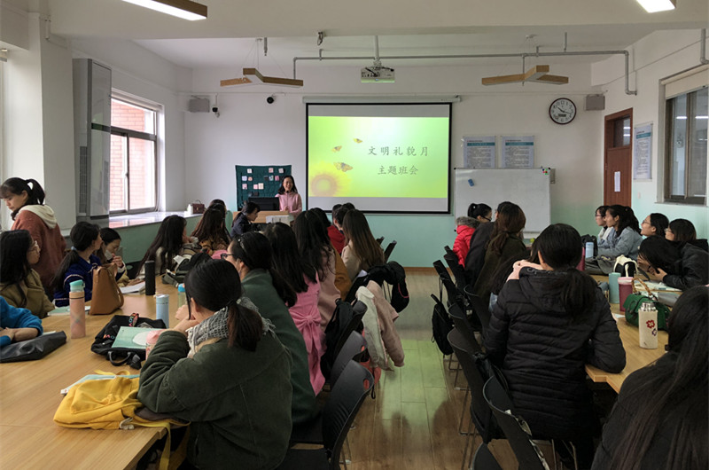 会上,各班班长带领大家认真学习《教育部、中央文明办关于深入开展文明校园创建活动的实施意见》(含《高校文明校园标准》)和《高等学校学生行为准则》等相关内容,希望大家身体力行,投入和谐文明校园的建设中。接着,班长带领大家以商量讨论的方式制定出班级的文明礼貌月活动方案,方案中倡议大家加强道德修养,规范言行举止,养成良好的文明习惯,树立良好的精神面貌,比如:垃圾入箱、不吸烟、不随地吐痰;遵守课堂纪律,不迟到、不早退、不旷课;排队买饭,文明就餐,珍惜粮食;不传谣,不信谣,不造谣等。针对活动开展情况,要求及时通过微博、微信、QQ群等新媒体方式传播给大家,向大家传扬文明礼貌行为,以自己或班级活动影响身边的朋友,最后评出文明礼貌月先进班集体、先进标兵并授予荣誉。