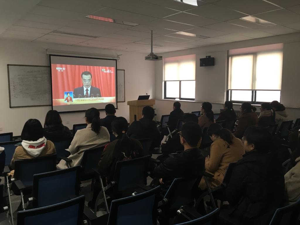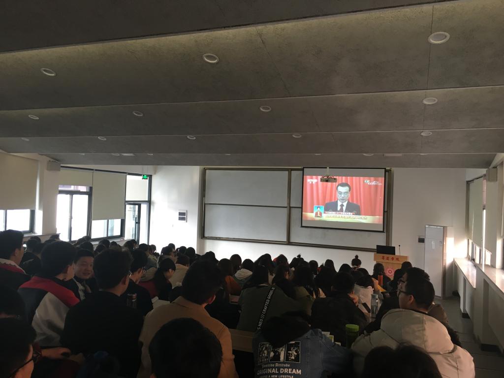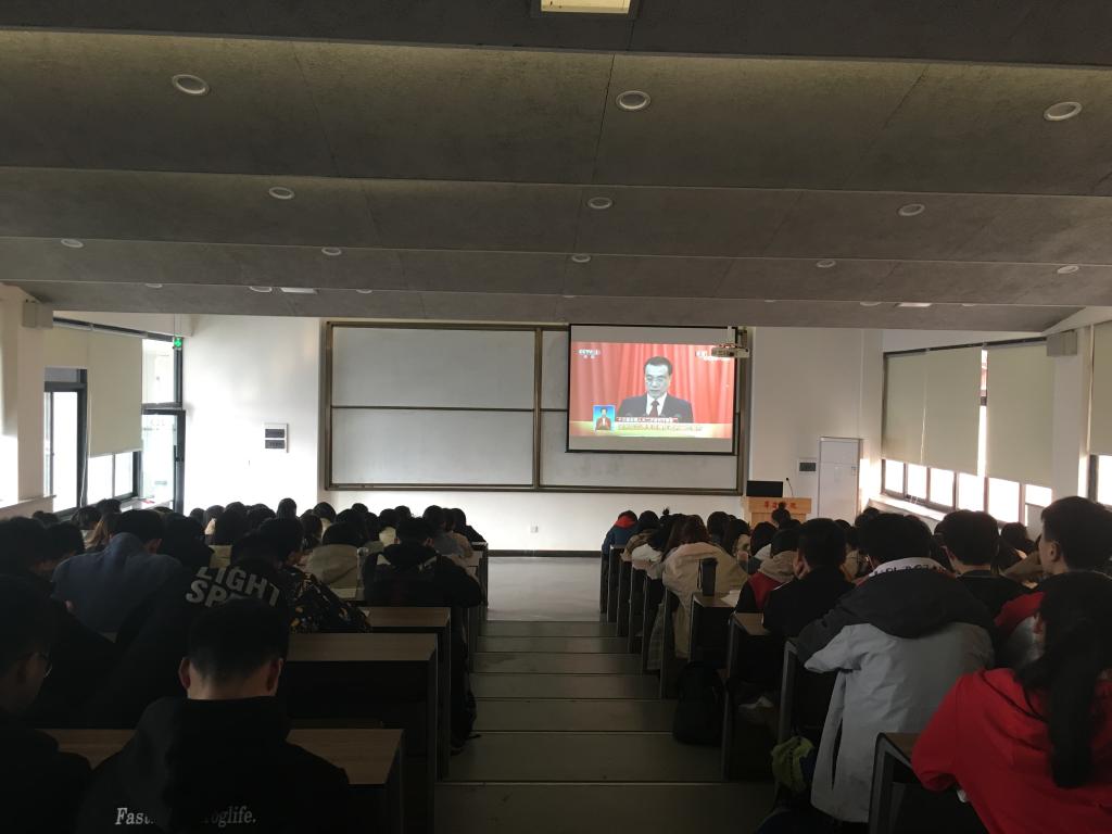 3月3日至3月5日,全国政协十三届二次会议和十三届全国人大二次会议相继开幕,3月5日上午,金融贸易学院组织我院师生于教学3号楼111室、210室集体观看了十三届全国人大二次会议直播,共同学习领会“两会”精神,并进行学习与讨论。