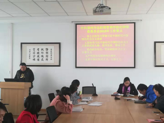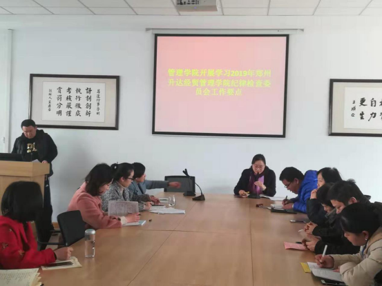 管理学院在2019年3月7日下午14:00在教学2号楼209组织召开了学习《中共华亿体育登录纪律委员会2019年工作要点》专题会议。管理学院全体同仁参加,会议由党总支书记张小雁同志主持。