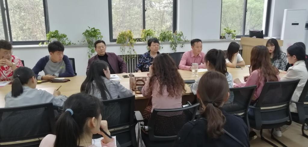 为进一步完善我院汉语言文学专业课程体系,提高教学质量,4月18日下午,汉语言文学教研室在教学1号楼314文法学院会议室举行了专业建设学生代表座谈会。在教研室主任赵严俊老师主持下,文法学院副院长郑心灵教授、汉语言文学专业赵宁教授和本专业各个班级的20余名学生代表参加了座谈会。
