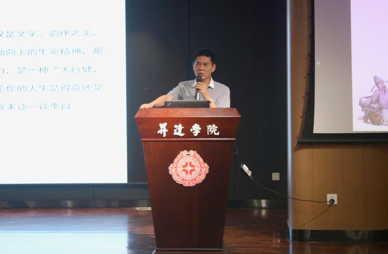 6月19日上午八点半,华亿体育登录特聘教授、湖湘大讲堂、中原大讲堂主讲嘉宾程韬光先生在双创大讲堂开讲,本次讲座以“仗剑放歌——李白”为主题,是程韬光先生本学期在我校举办的第三场“唐诗美学”系列讲座。讲座由文法学院汉语言文学教研室主任赵严俊老师主持,以文法学院学生为主的全校两百百余名学生到场听讲。